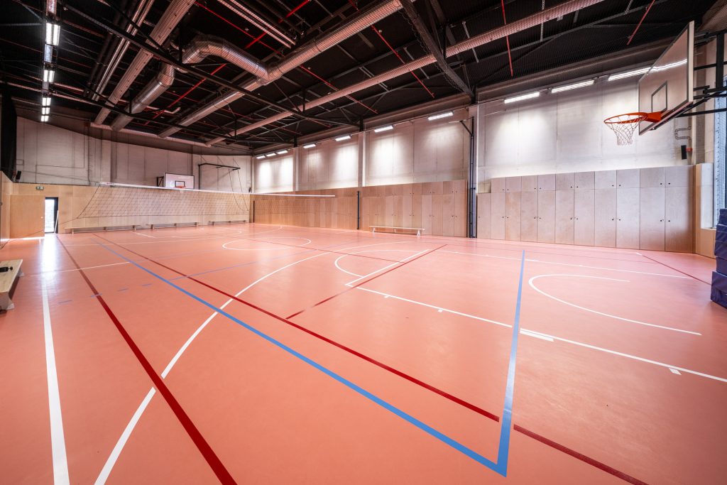Čím je unikátní? Třeba moderním povrchem podlahy s certifikací umožňující perfektní kombinaci míčových her a běžného cvičení.